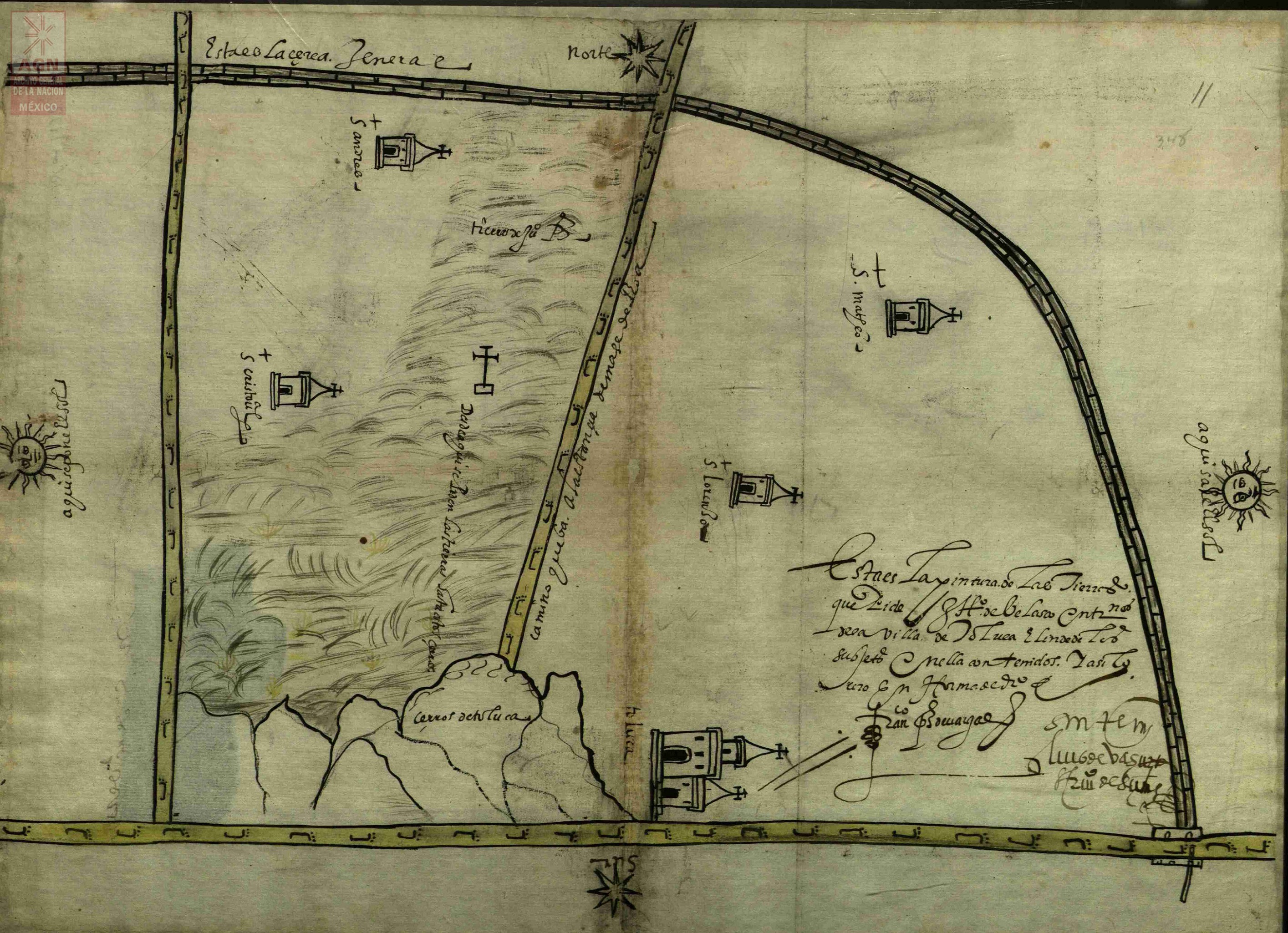 - Figura 6. Mapa de solicitud de merced de Baltasar Dorantes de Carranza en los alrededores de Xiquipilco