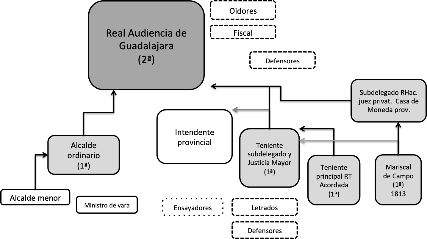 Real Audiencia de Nueva Galicia, falsificación monetaria, reformas borbónicas, InsurgenciaResumen